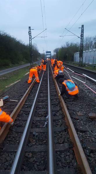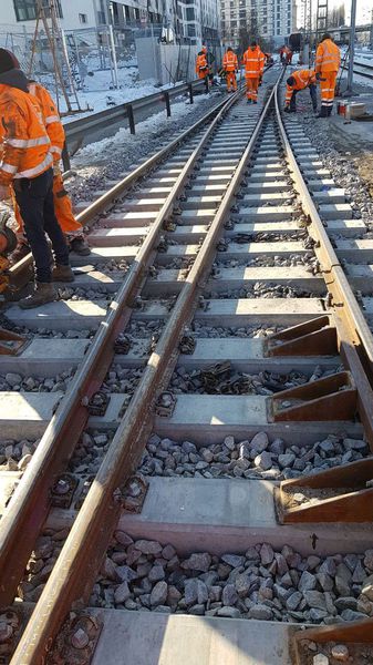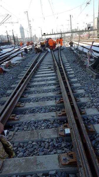 Gleis- und Weichenmontage (Demontage), Joche vorbauen, Schwellenwechsel, Schienenwechsel, Umbauarbeiten, M-Linie, B-Linie vor und hinter